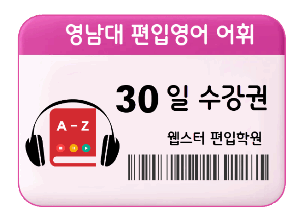 영남대 편입영어 어휘 30일 수강권은 편입시험이 임박하거나, 단기간에 어휘력을 끌어 올리는데 좋습니다.
